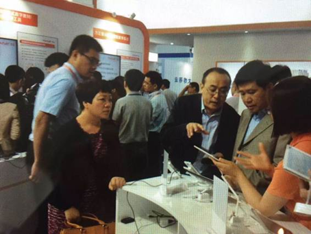 吉林省教育厅副厅长苏忠民(左一)到访方正电子展台