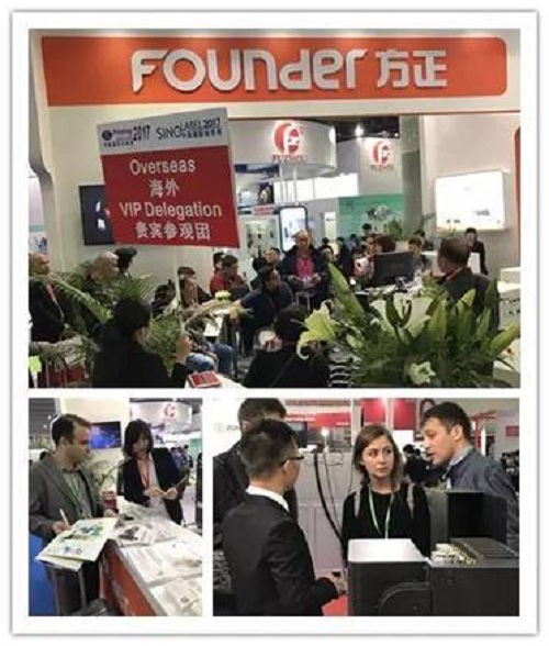 方正电子展台依旧是橙白色的经典style,分外亮眼~